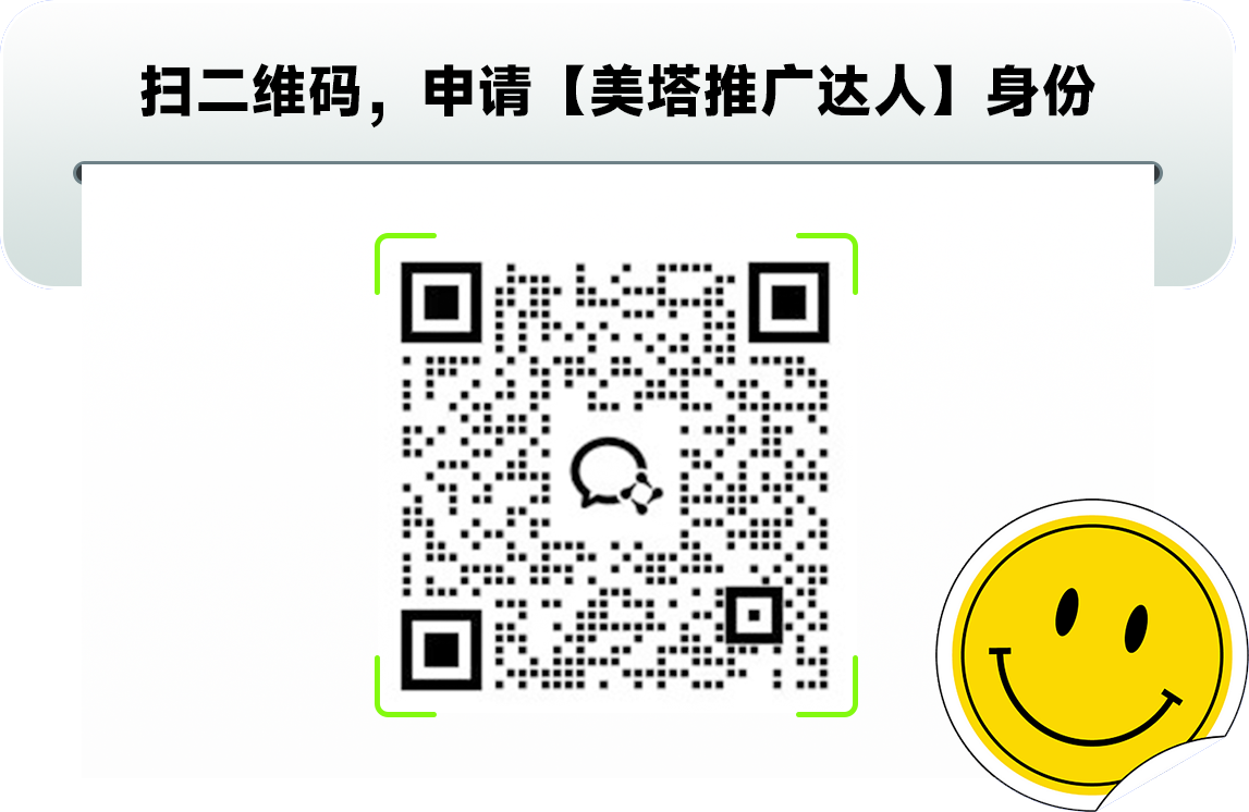 美塔推广达人计划,通过向好友推荐商城好物、可获得最高20%的返现奖励。